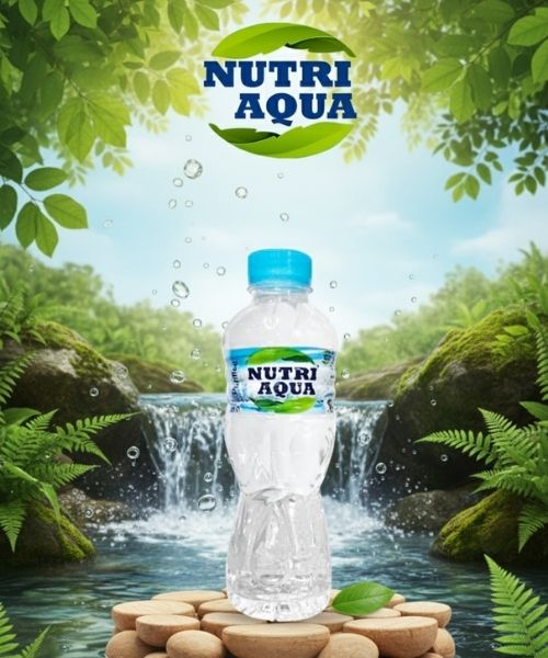Experience the refreshing taste of Nutri Aqua Primavera — purified bottled water made with care, certified for quality, and crafted to keep you hydrated every day.